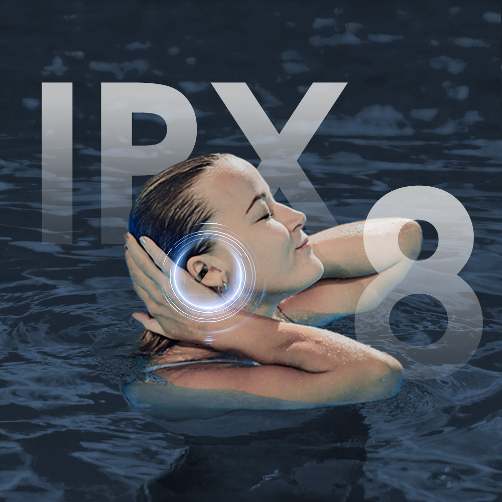 防水等級達IPX8,游泳等水上運動都不受影響。輕薄設計,長時間佩戴也無負擔。