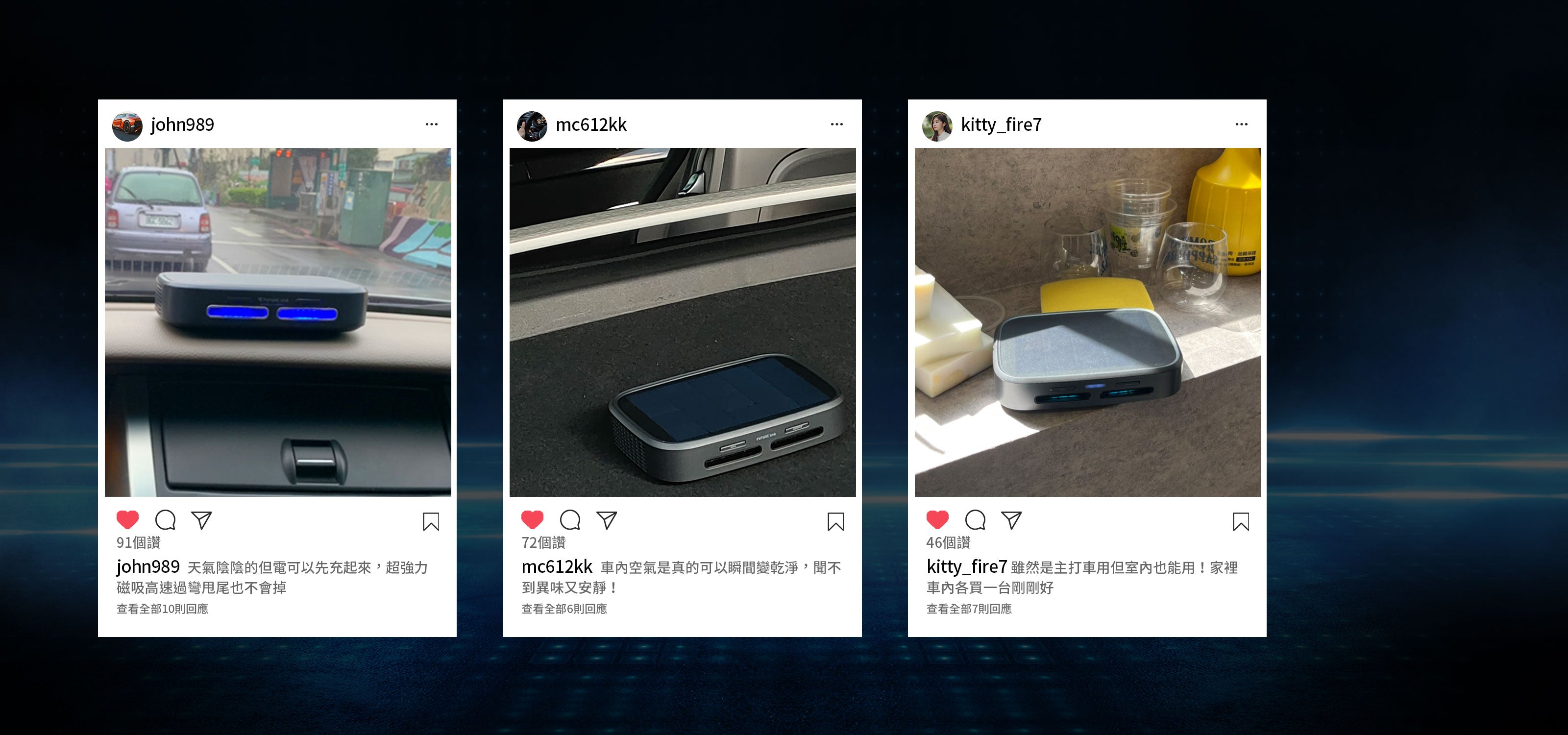 內建移動感測器,車輛一發動就自動開機,讓您隨時呼吸到純淨健康的空氣。
