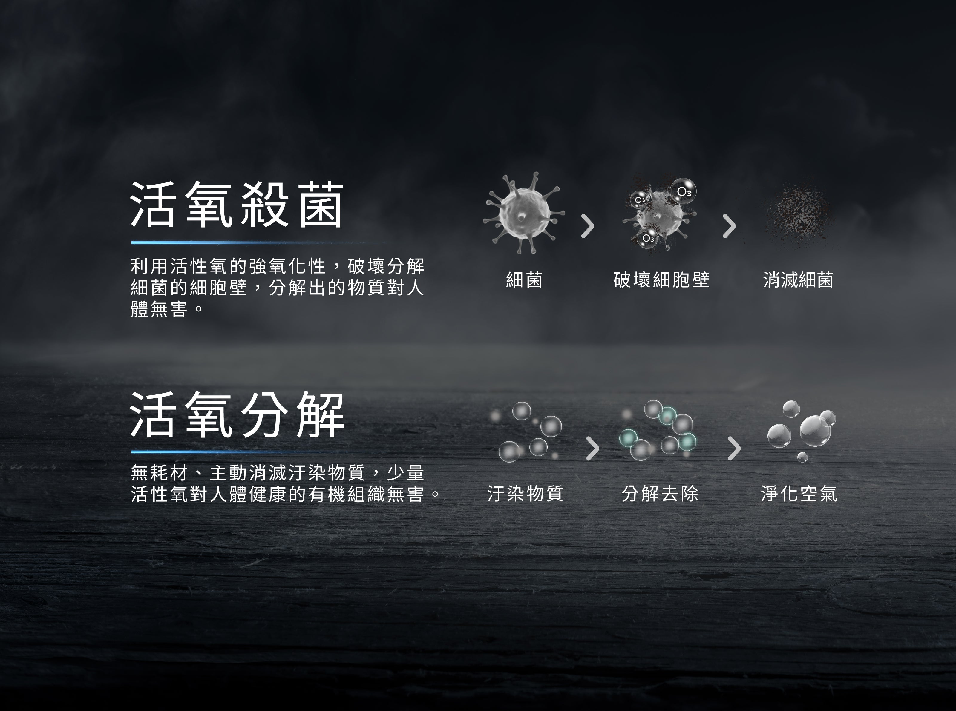 負離子/活氧雙重滅菌,除菌率達99.9%