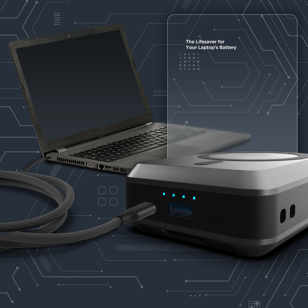 筆記型電腦也能快速充電,不怕找不到插座的窘境,也不用再帶著超級笨重占空間的變壓器出門。