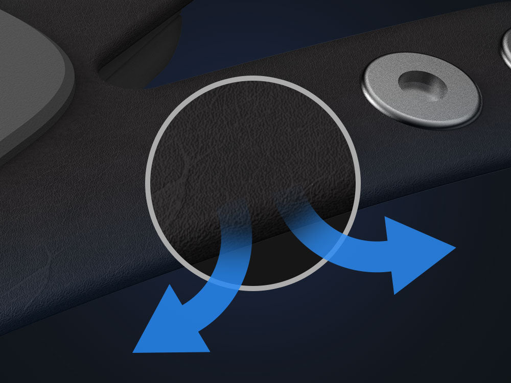 使用麂皮皮革包覆,使用上手感棉柔舒適,同時透氣度相比一般塑膠外殼更為通風涼爽