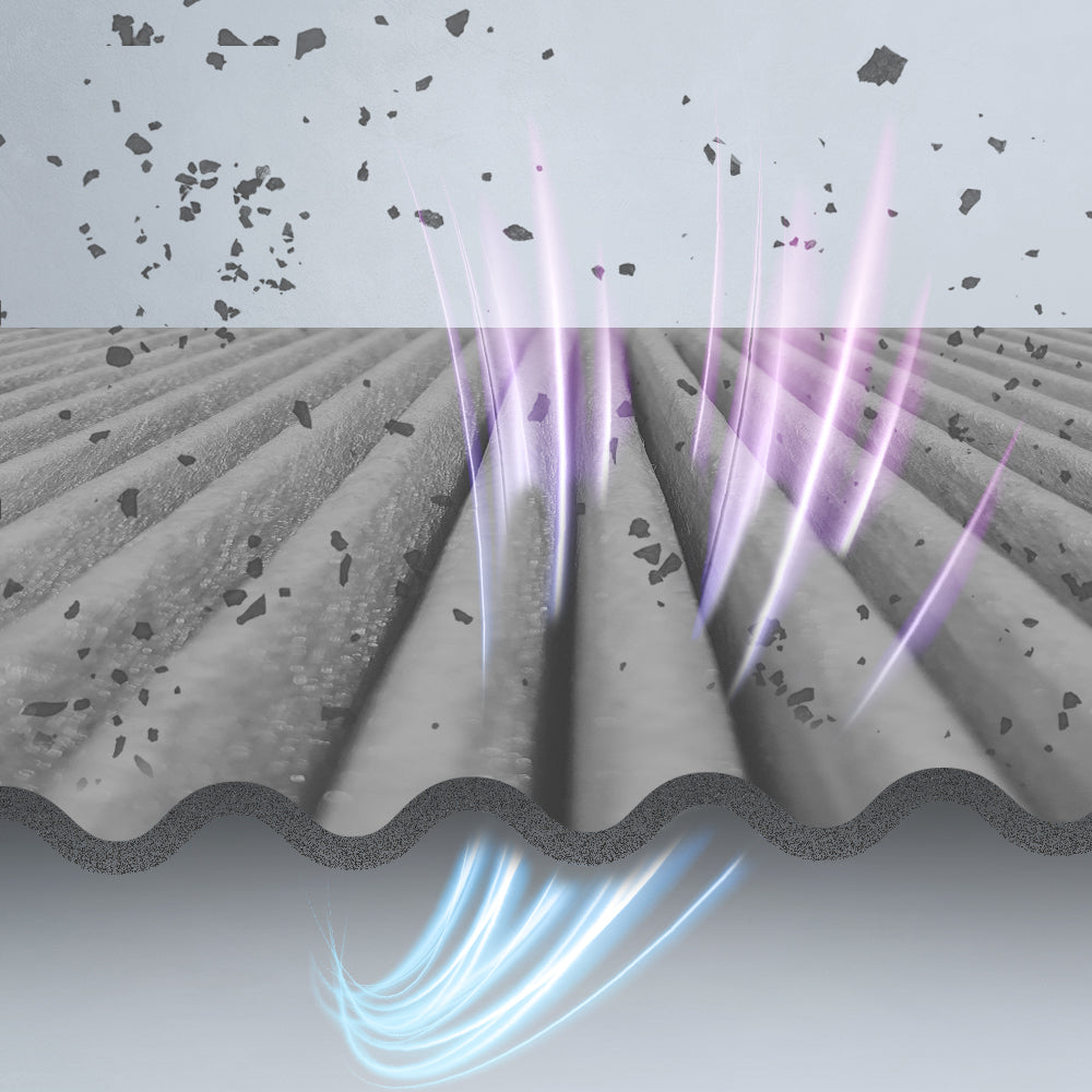 水洗式HEPA 13濾網,從灰塵到PM2.5都不放過,利用奈米級縫隙鎖住看不見的髒汙,只通過乾淨空氣。