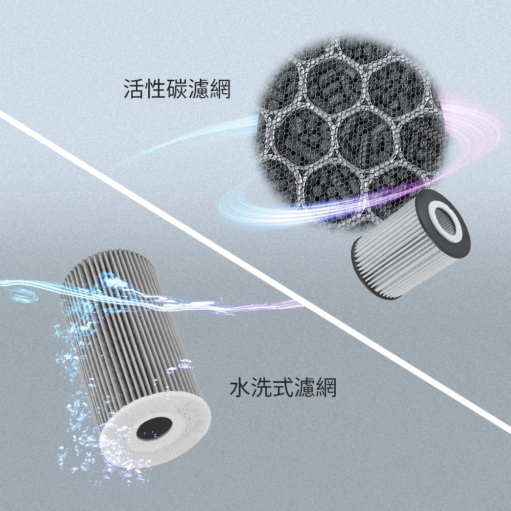 活性碳 : 強化除臭、除甲醛,但不可碰水,正常使用下約可使用8-10個月。