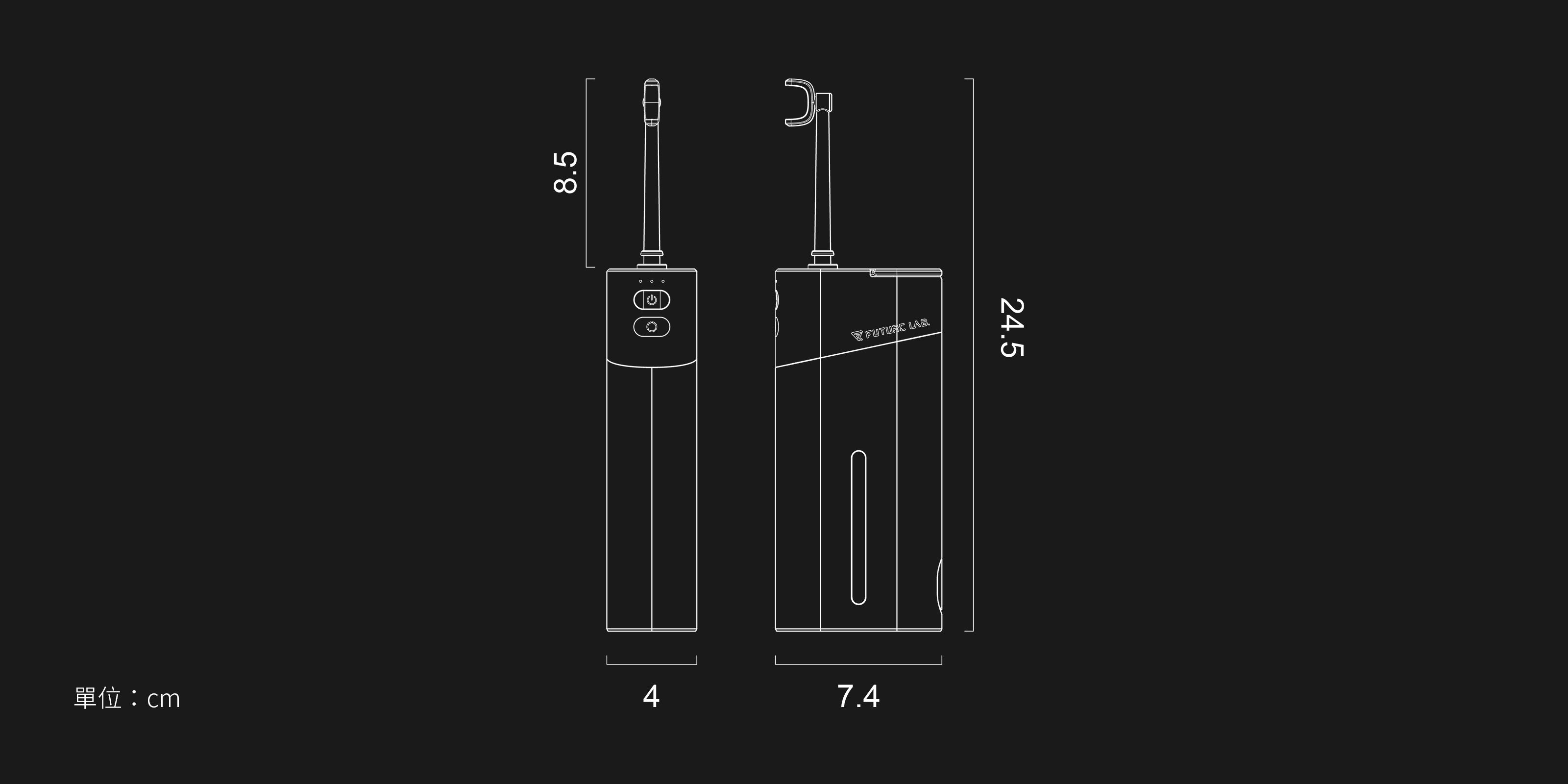 讓清潔口腔不再侷限於家裡,Type-C快充約1小時充滿,能用1週(一天使用兩次計算)。