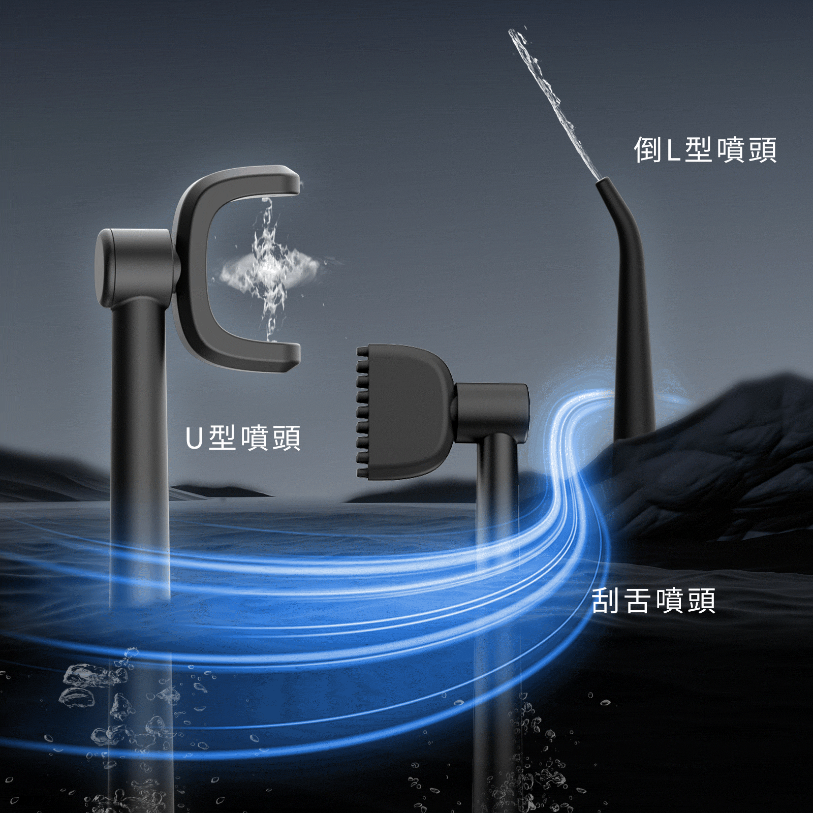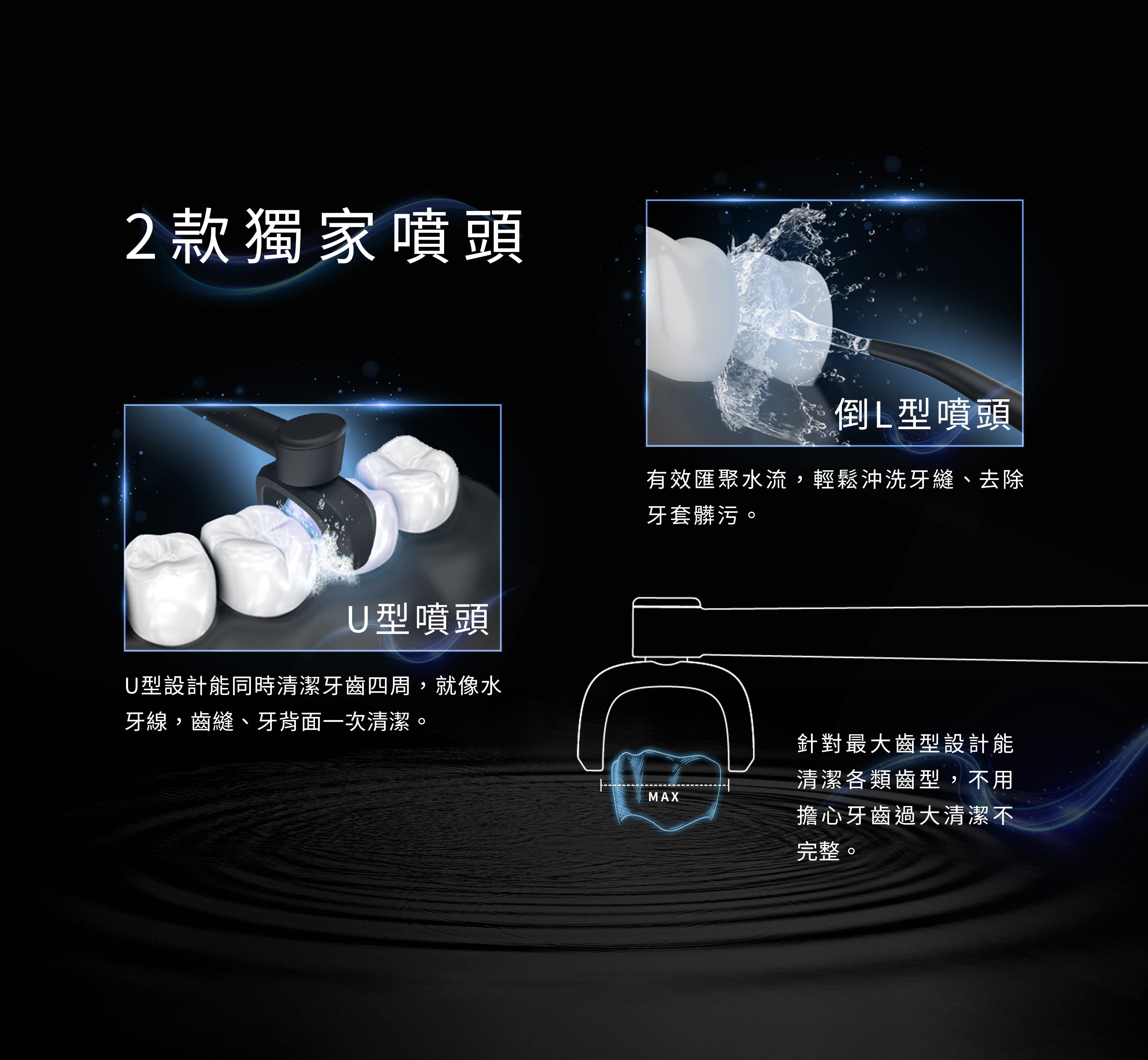 倒L型噴頭:奈米級水柱,可清潔看不到的死角牙縫