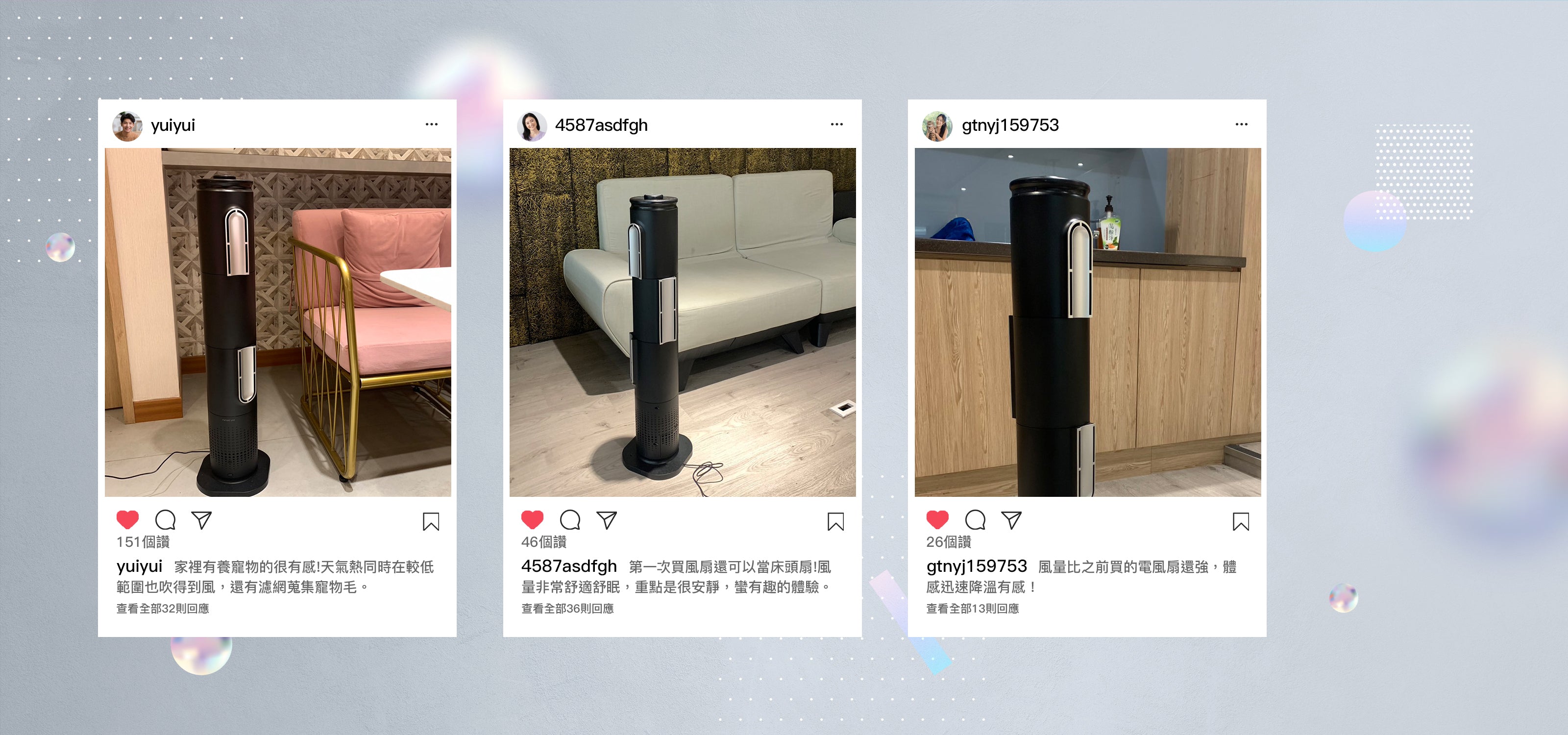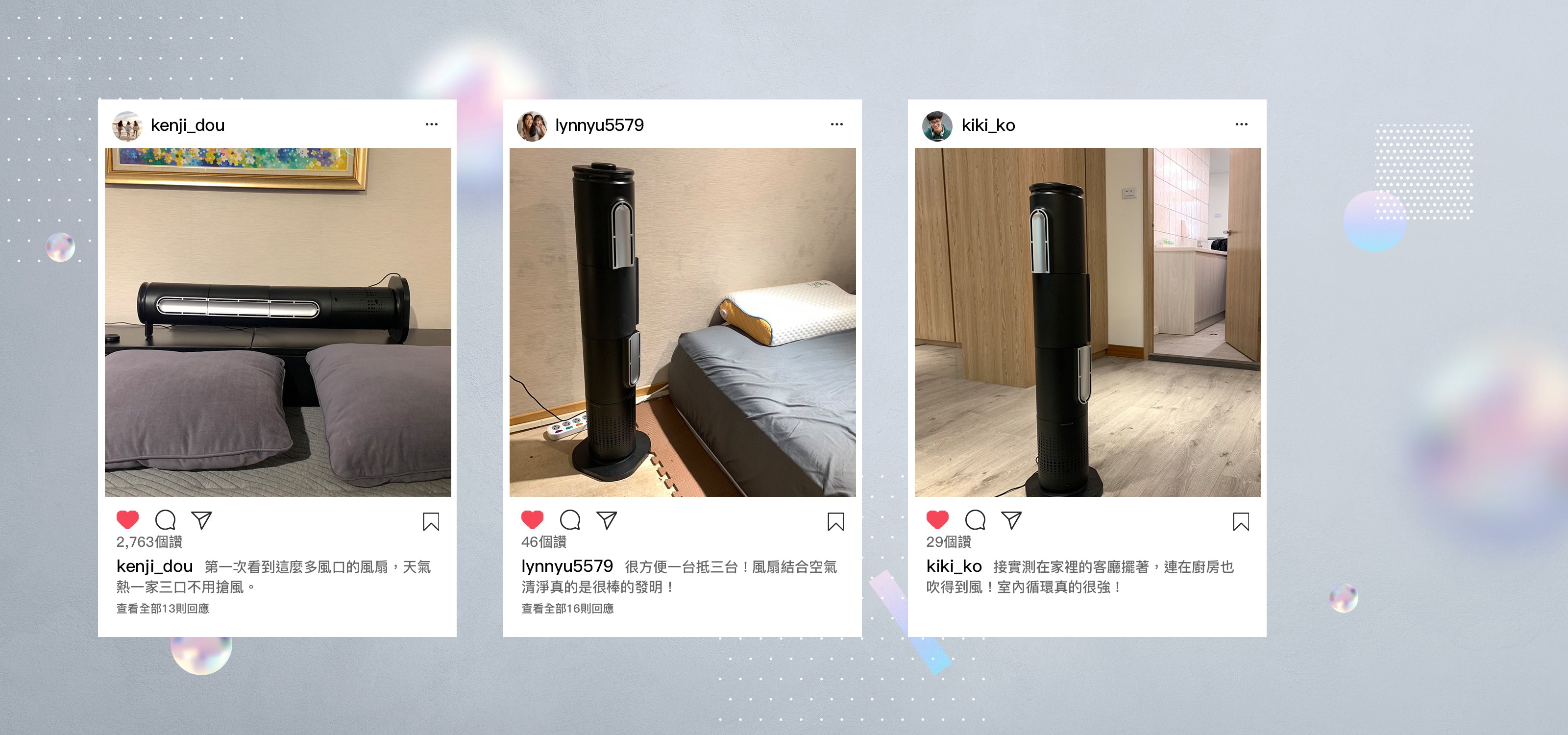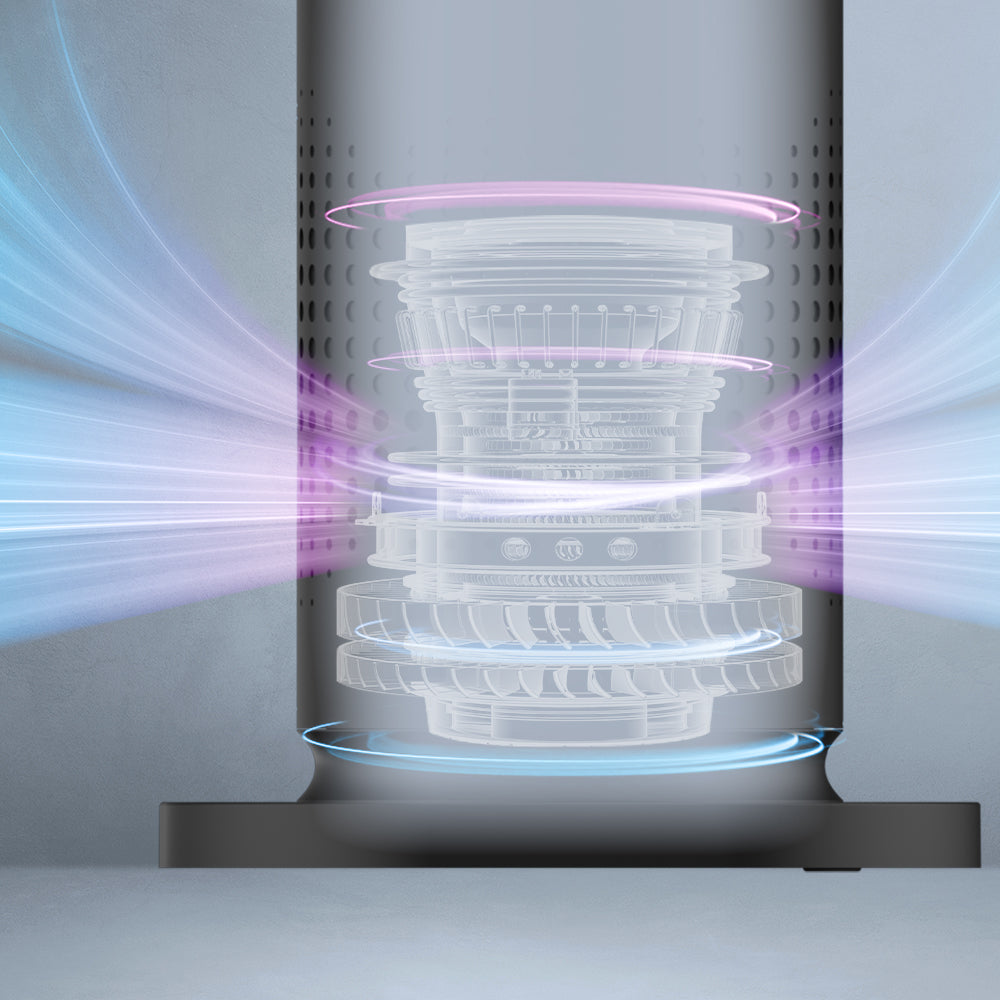 業界首創三風口設計,零死角送風同時滿足人體降溫及室內空氣循環,獨家增壓渦輪設計快速產出強勁氣流,送風距離更遠,相較其他循環扇更快達到空氣流通,搭配空氣濾淨濾網完整淨化空氣,提供清新舒適的室內環境。