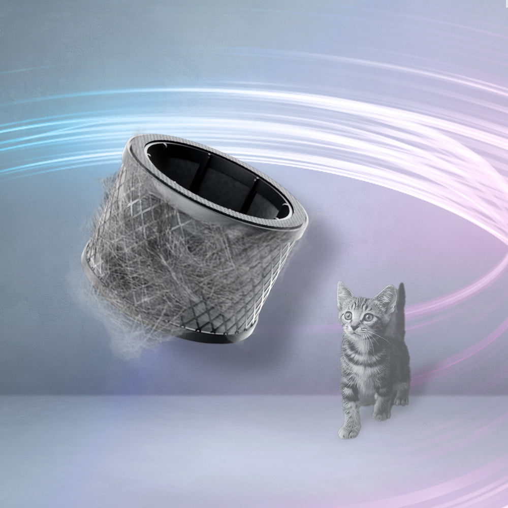 集中吸附空氣中60%以上毛髮,獨家毛髮專用濾網輕鬆拆洗清潔,長效維持清新潔淨的環境。