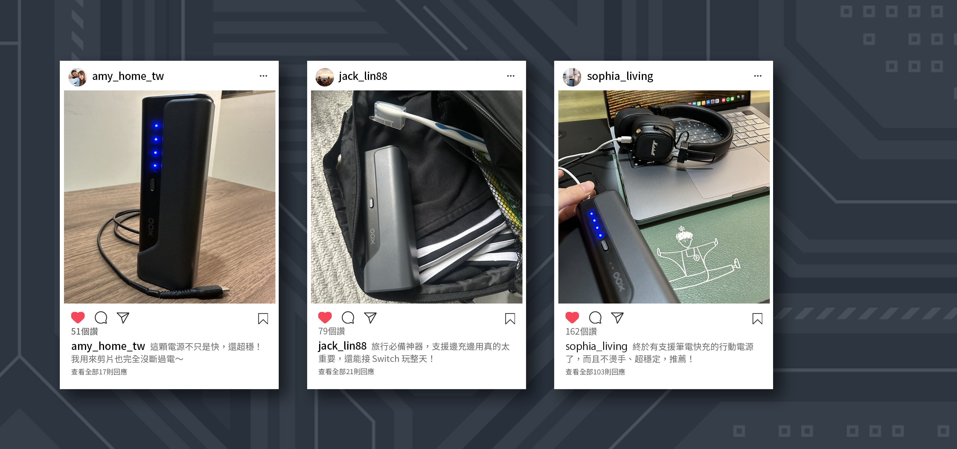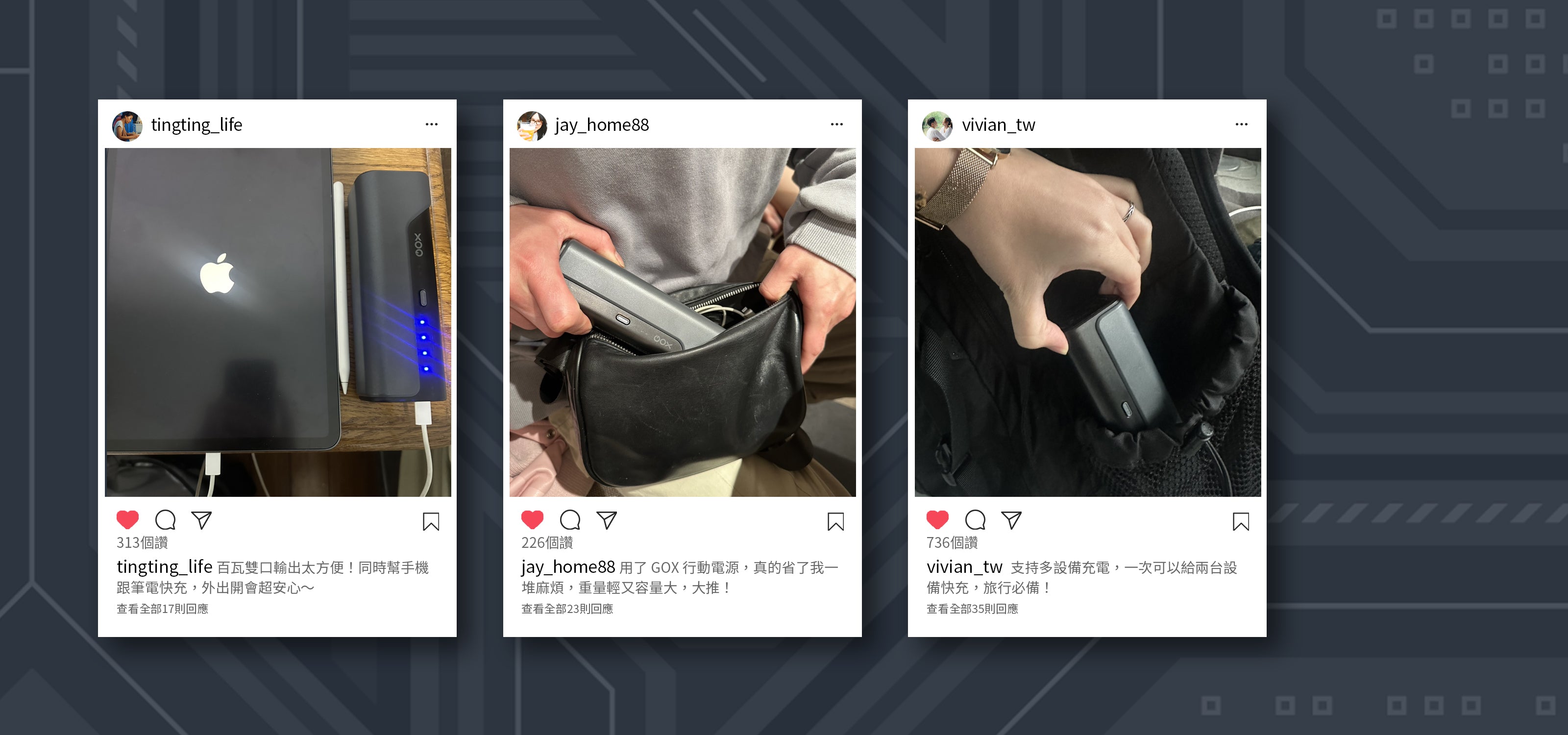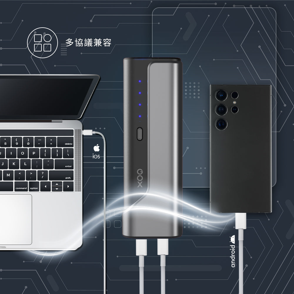 GOX 團隊從筆電使用者的真實需求出發,設計出支援 100W 雙口快充的行動電源,經歷數十次測試與精密調校,確保穩定供電並兼具安全與便攜性。