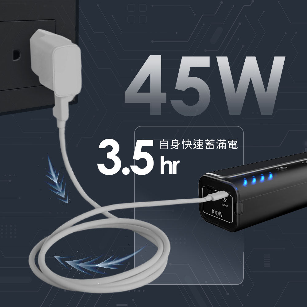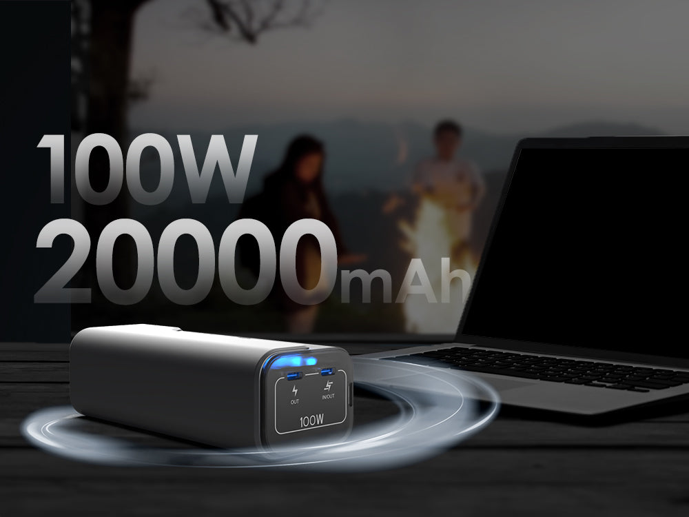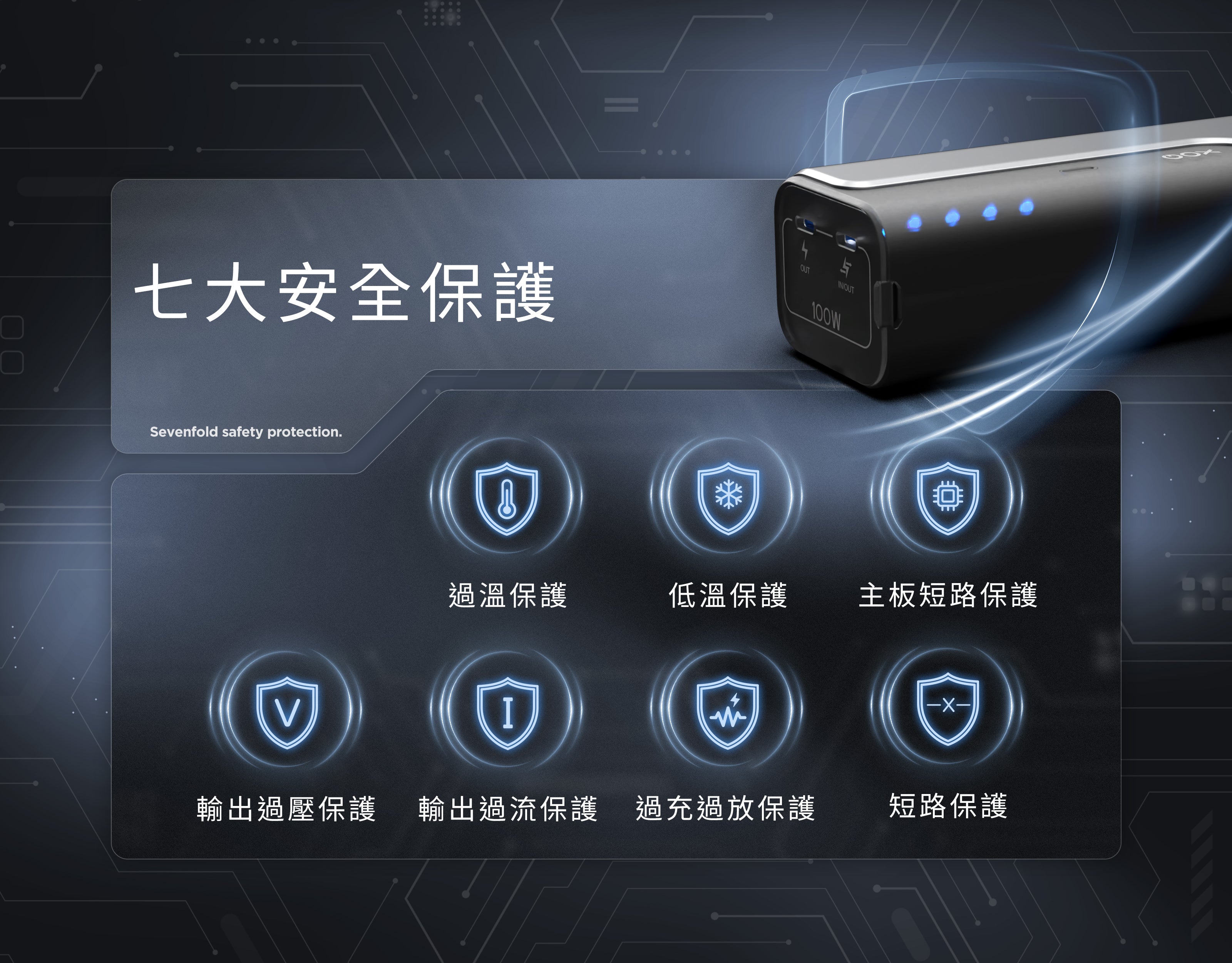 20000mAh大容量,100W高功率,皆符合航空安檢規範,可以直接隨身帶上飛機的行動電源。