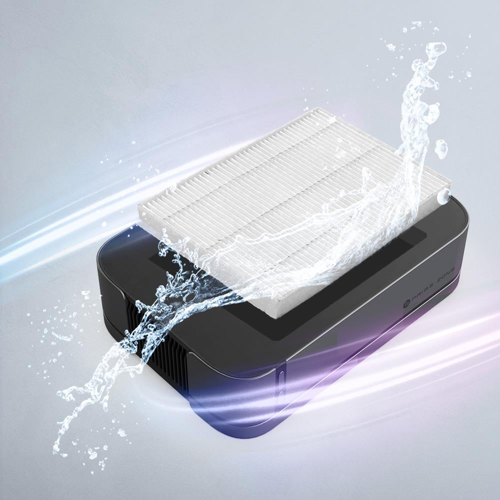 搭載 H11 等級 HEPA 濾網,可有效過濾粉塵、花粉、PM2.5 等空氣污染物。可水洗重複使用,相較於一次性濾網,更加環保與經濟,讓淨化效果持續穩定,不需頻繁更換濾芯。