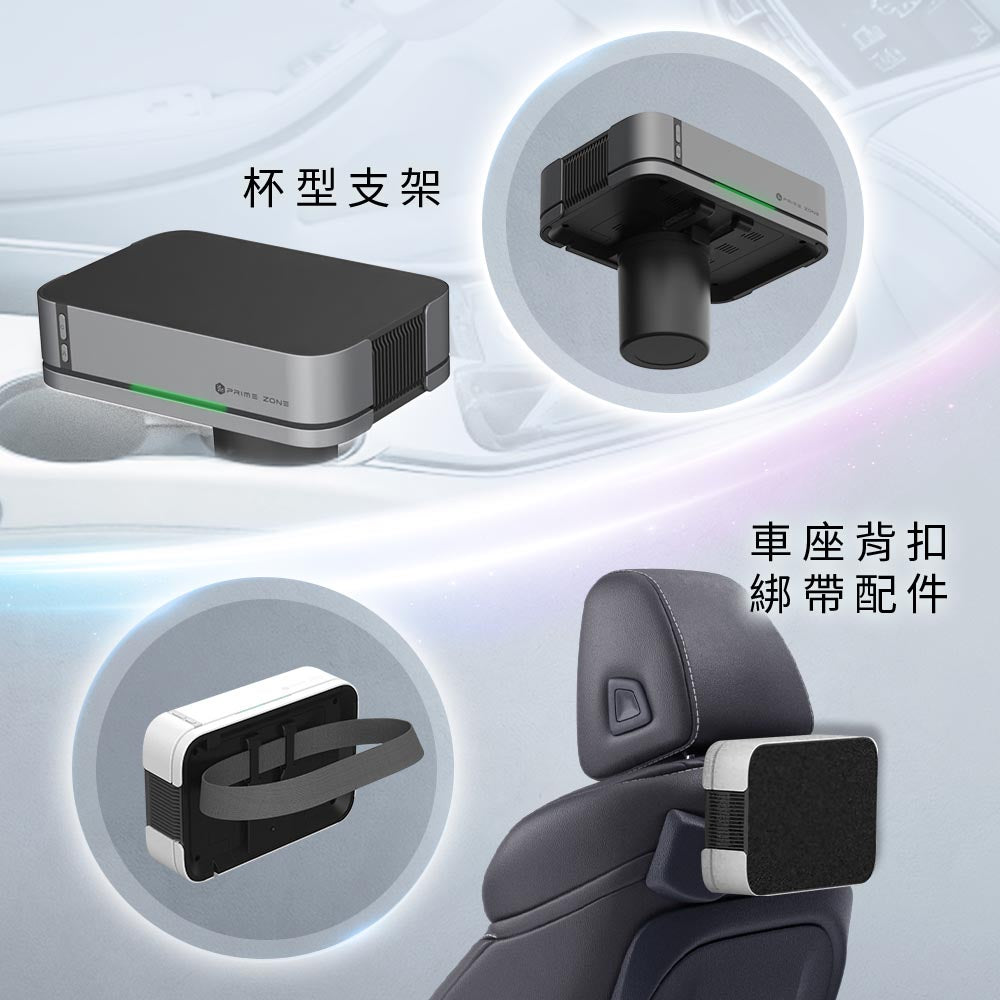 提供多種安裝配件,適用於 車內儀表台、杯架、座椅靠枕後方,甚至可用於車內、辦公室、臥室等場景,靈活適應各種需求。擁有可拆卸固定架& 背帶設計,讓使用更加便利。