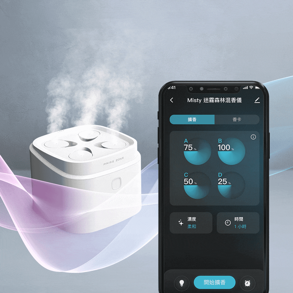 多款精油配方自由調配,自製香卡記憶專屬你的香味,讓每個環境沉浸在獨特的香氛中。