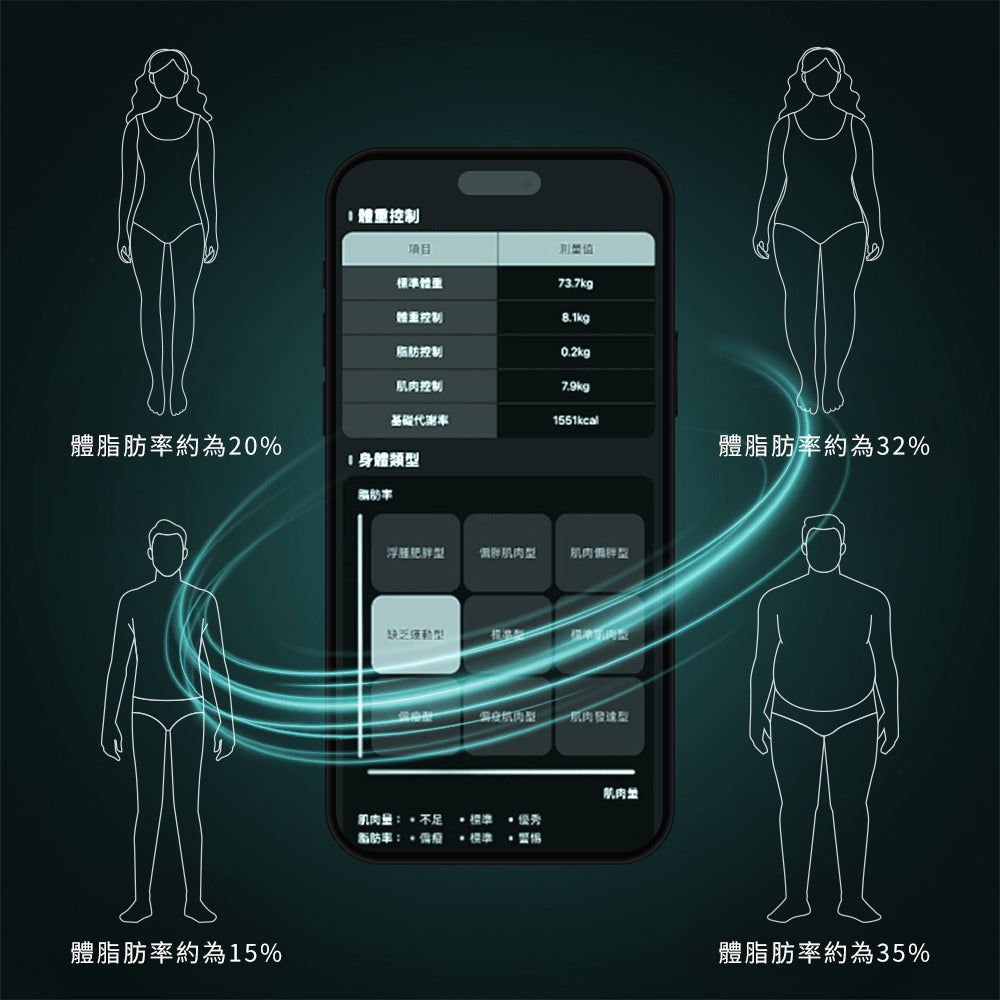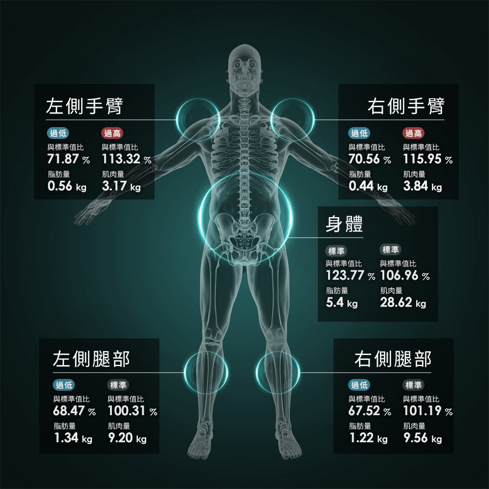 身體的組成比例會大大影響身形!脂肪的體積是肌肉的三倍,因此在相同的身高、體重下,脂肪率越低身形越精實。透過全方位檢測評估出你的身體類型,讓你每一次的鍛鍊都不浪費。