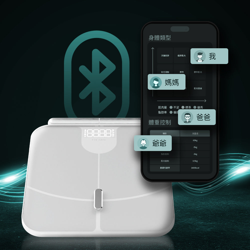 可新增獨立檢測用戶,分別紀錄數據;也可多台手機藍牙連接體脂秤,保護個人數據隱私。