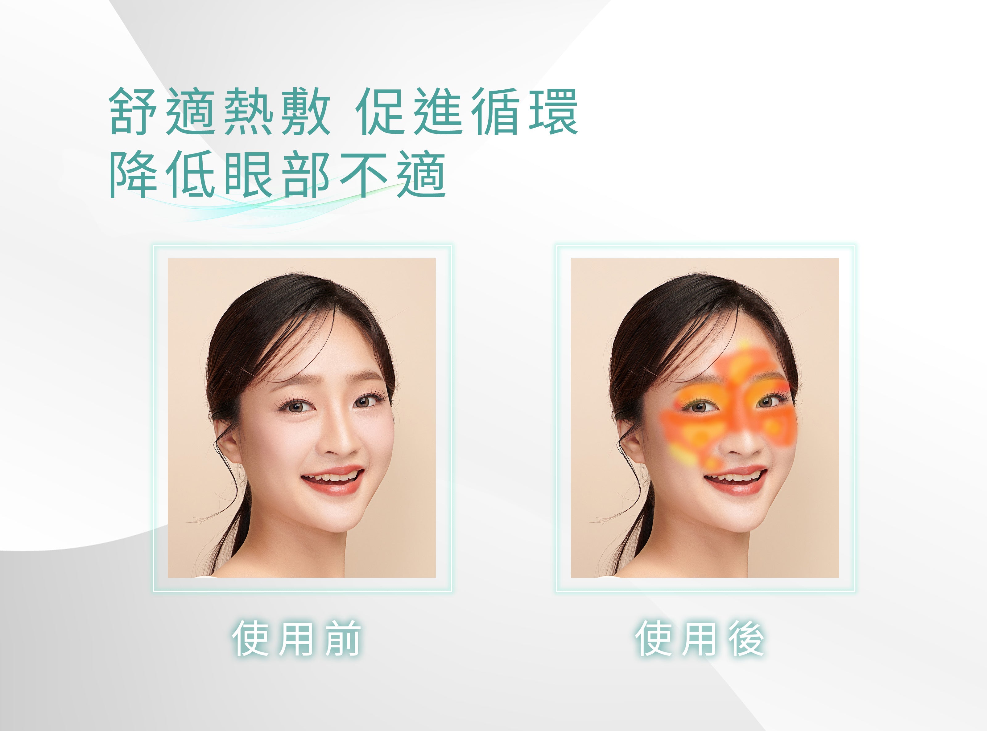 選用pl發熱膜8字型設計,大面積環繞雙眼,無死角均勻發熱,溫和紓解壓力