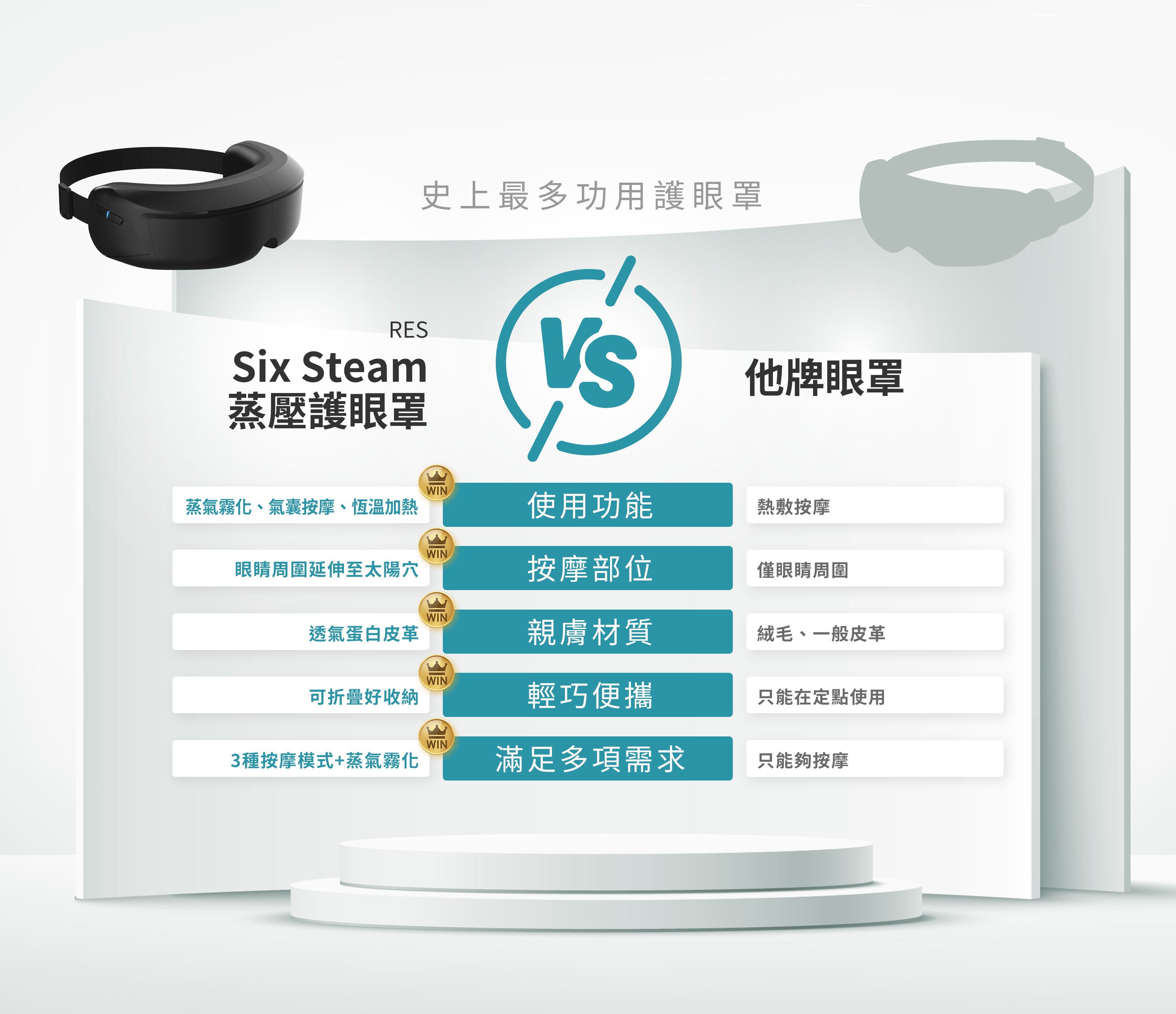 現代人一天有超過三分之二,都盯著電腦螢幕,各種眼睛不適與疲勞的問題接踵而至,蒸壓護眼罩讓你一天所累積的眼部不適一筆勾銷,客製化的按摩模式讓每一個人都可以在家做眼部SPA,給眼睛全方位的呵護