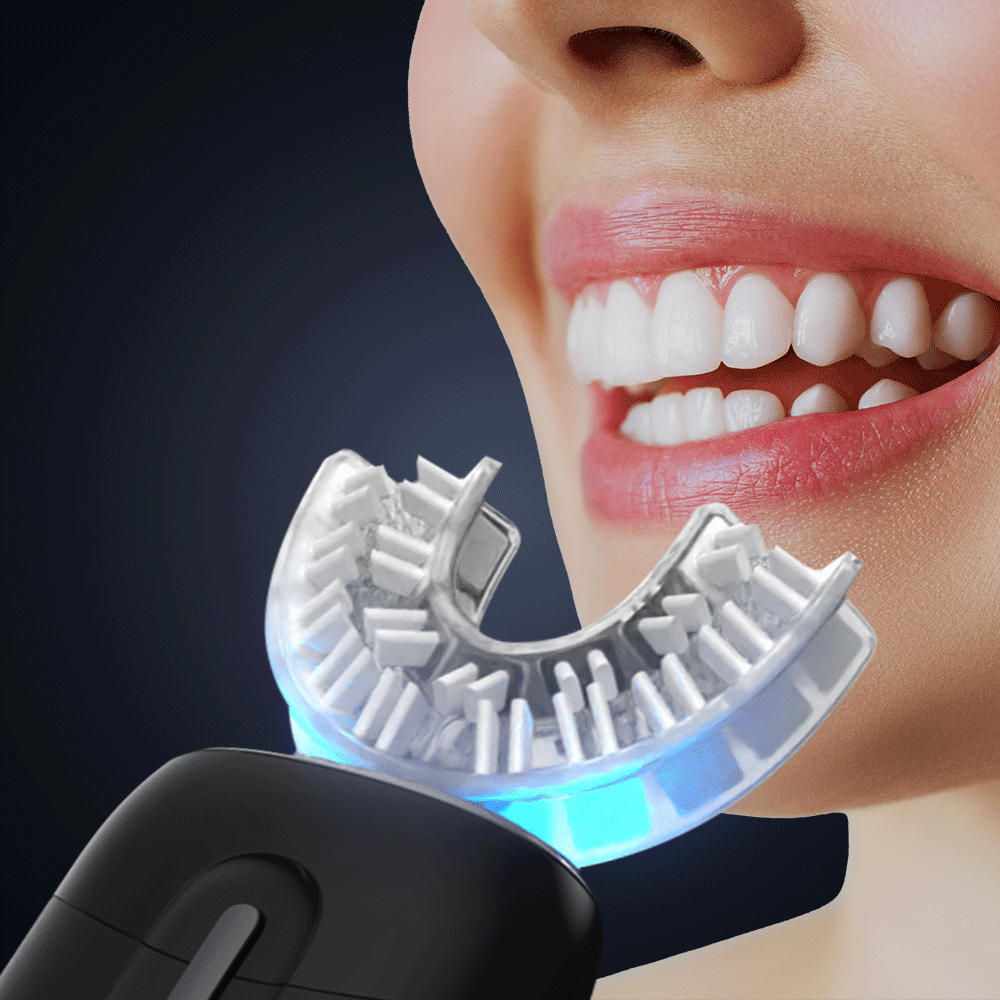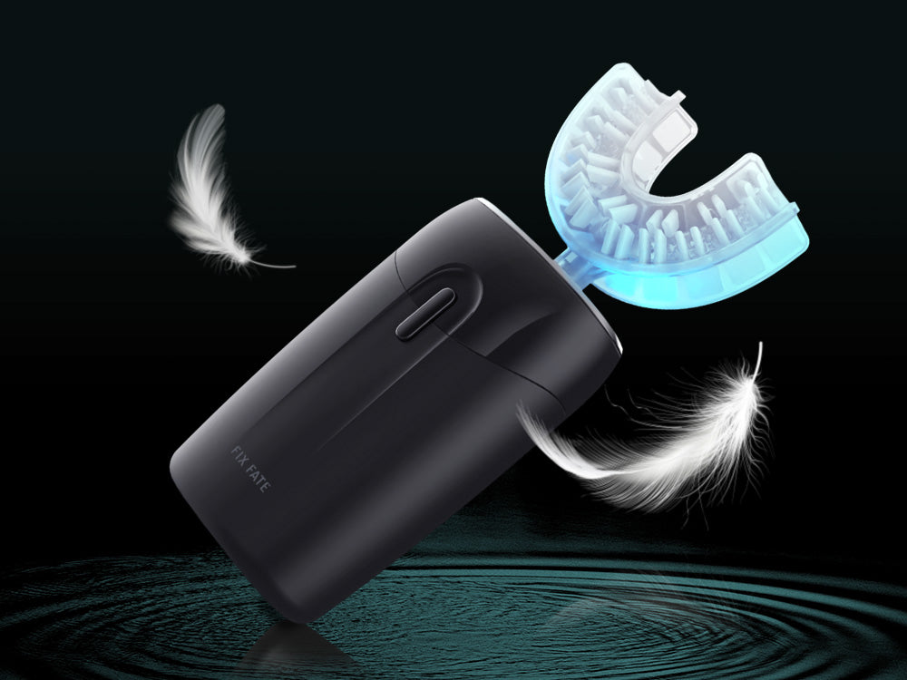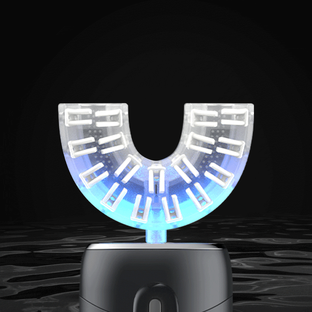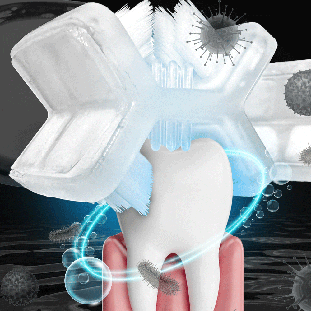 半圓形環狀設計,貼合口腔,前後左右100%全面包覆,任何一個角落跟縫隙都刷得到,改善傳統牙刷刷不乾淨的缺點。