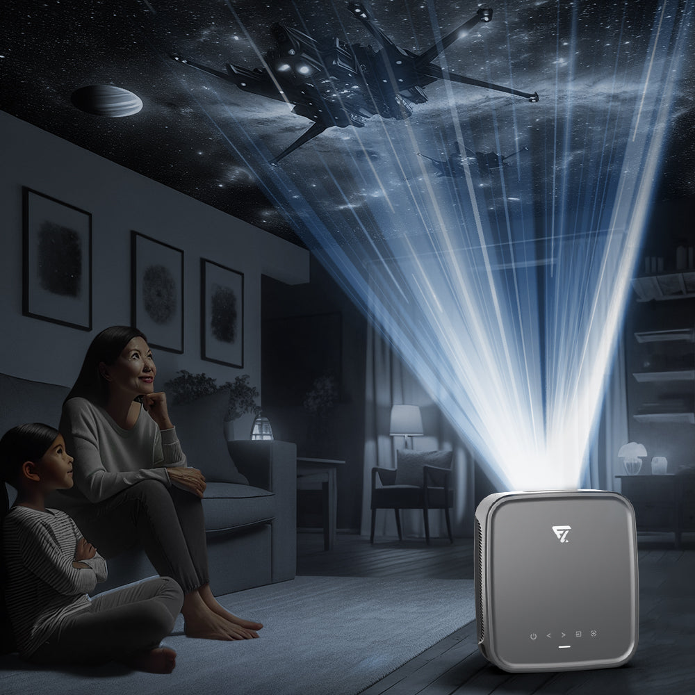 如果遇到牆壁不適合投放也沒關係,直接立起來投影,讓天花板搖身一變成巨型銀幕。