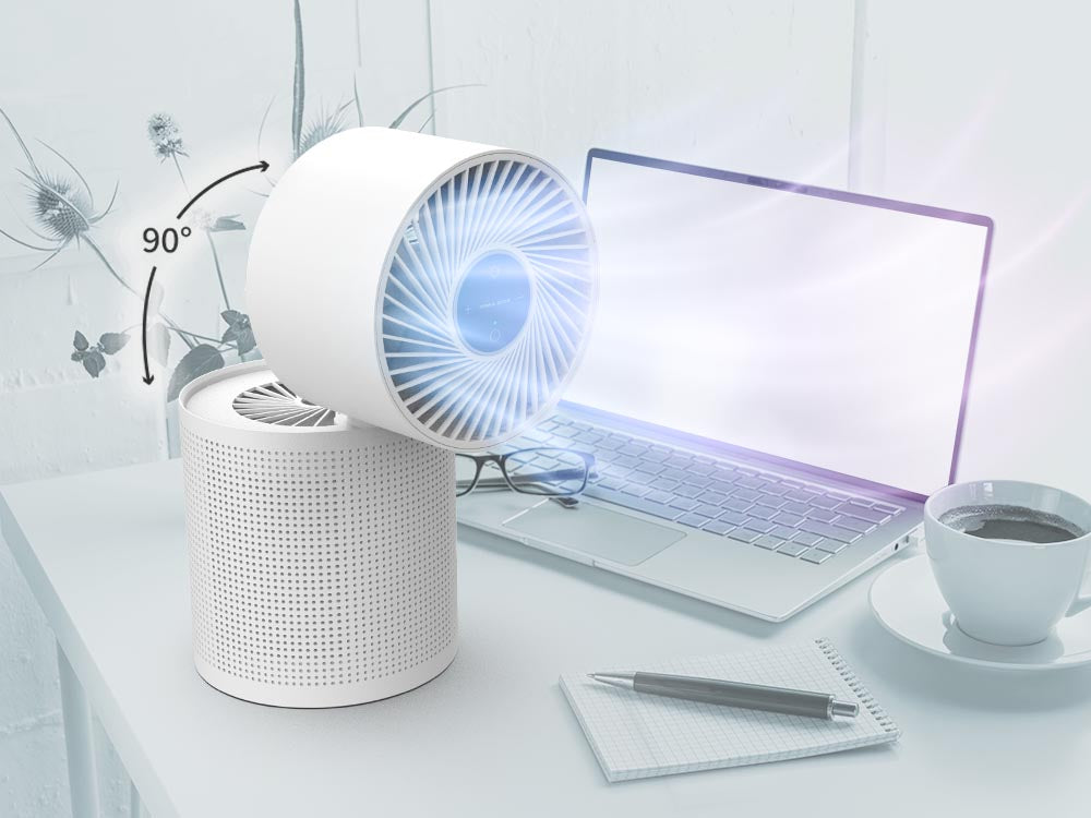 為應對現代高標準的居家空氣需求,我們設計這款結合涼風與空氣淨化合一的多功能風扇,舒適涼風同時淨化空氣。支援 90° 翻轉設計,風向更自由,打造舒適涼爽的健康空間。