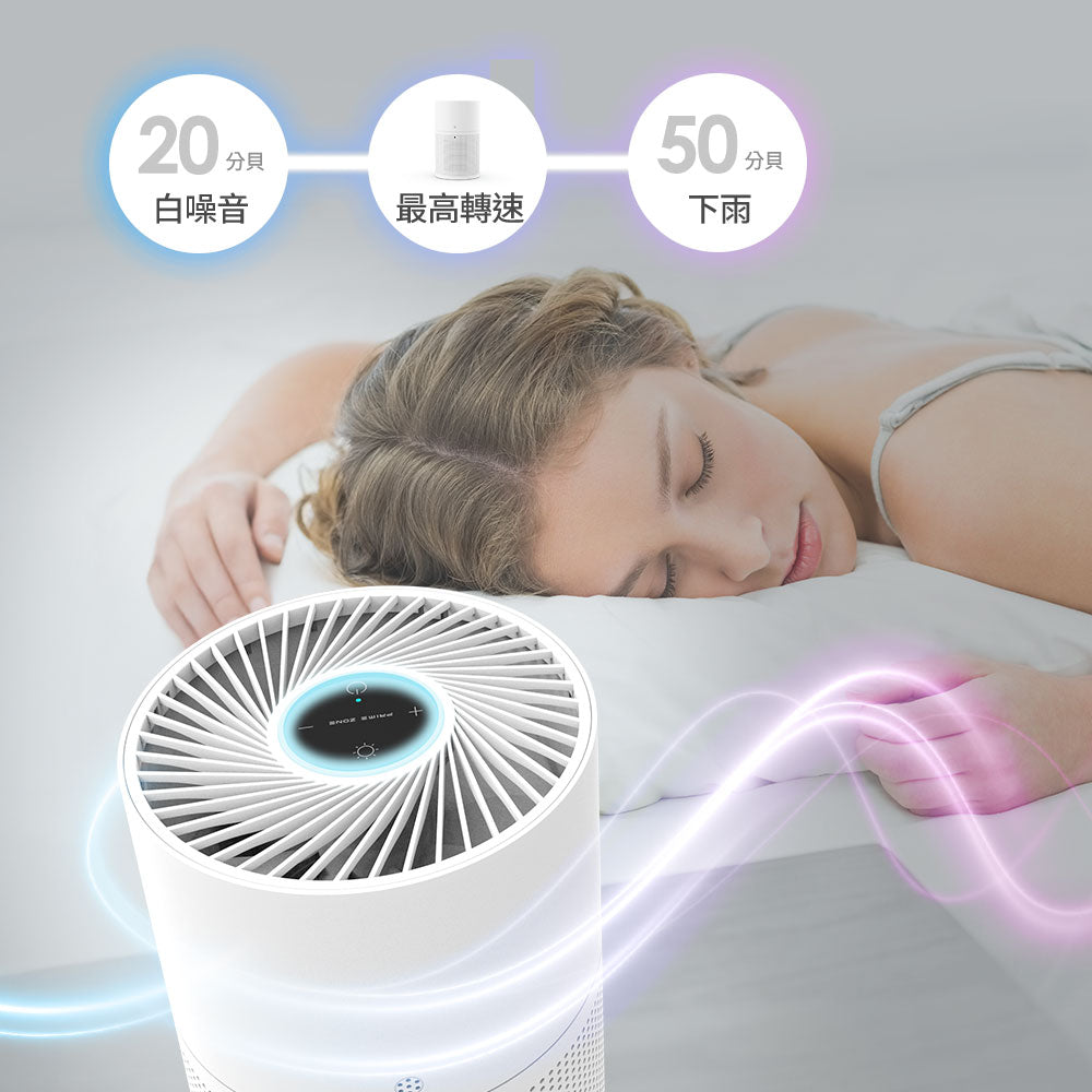 2檔燈光調節功能,不會直接刺激眼部,也方便照明漆黑環境。降噪風道設計,最高轉速運行低於50db,靜音安心入睡。